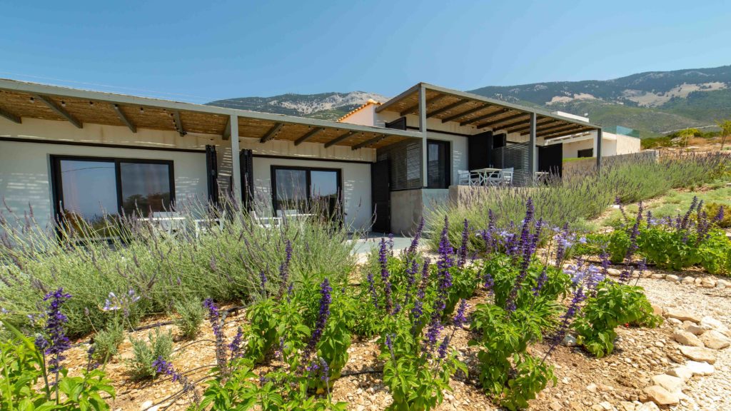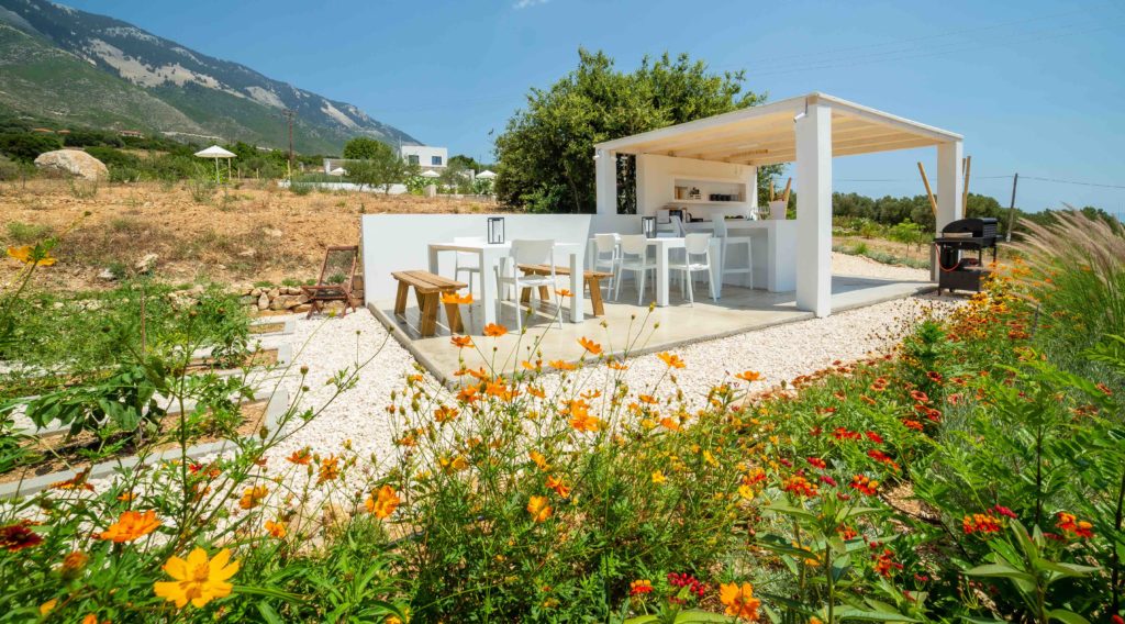Margaux and Emmanuel designed and decorated their villas, mixing contemporary, Cycladic and Kefalonian styles. The smallest details have been carefully considered and only high-quality materials have been used to create this contemporary and cozy home.